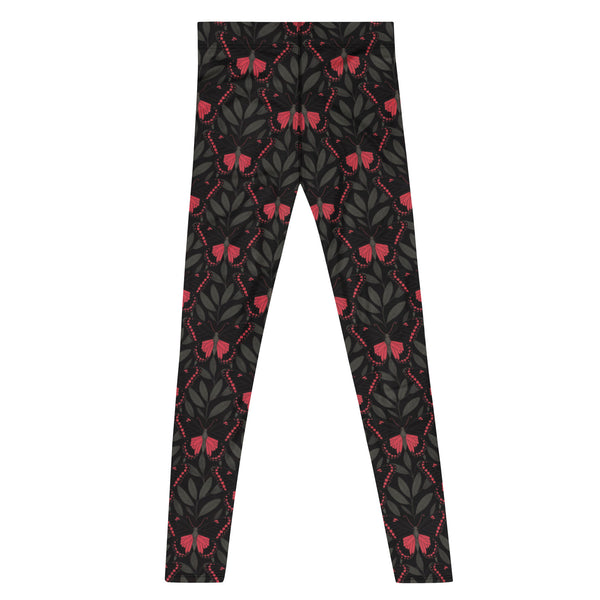 Crimson Wings – Red Butterfly & Shadow Leaf Men’s Leggings